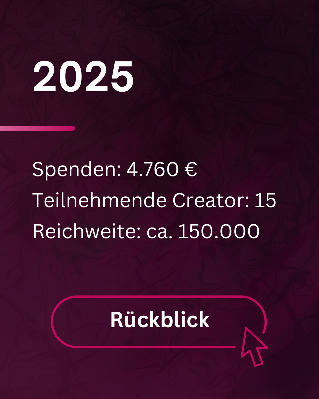 Seit 2020 wächst #PlayPink jedes Jahr weiter.Hier findest du Rückblicke auf vergangene Aktionen, Streams und Events sowie die erreichten Spendenstände.